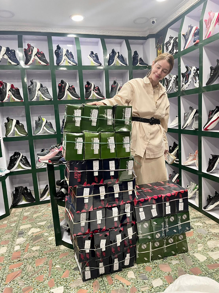 ▲ 安妮在當地購買40雙鞋捐給孩子們。(圖:伊林娛樂)