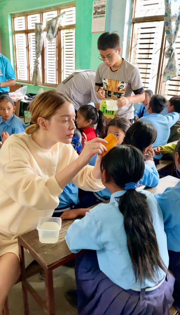 安妮出發前準備了許多餅乾零食,另外在當地買鞋子、筆記本、糖果等,分送給小朋友,有中餐丙級執照的她,也下廚與大家分享她的廚藝。在尼泊爾期間,她早出晚歸,有些寺廟及學校很偏遠,車程一趟就需2、3小時,安妮說,當她知道小朋友其實很需要鞋子時,就去市場採購40雙鞋,當地老闆得知她是做公益,還打對折售出,一起做愛心。