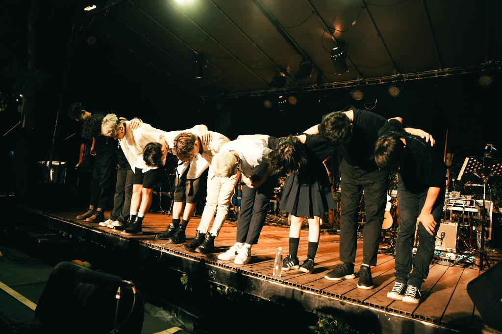 ▲ 台東場以畢業典禮為主題,U:NUS身穿學生制服與粉絲分批合拍「畢業團照」。(圖:滾石唱片)