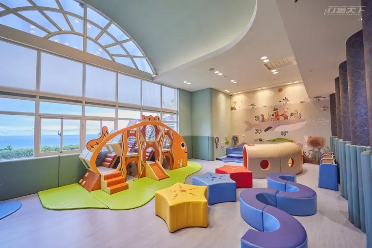 ▲ 瑞奇活力館兒童遊戲室內小丑魚造型溜滑梯,還有很多好玩的遊具。(圖片提供:遠雄悅來大飯店)