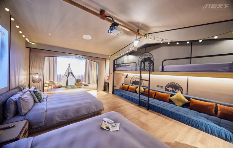 ▲ 全新改造的露營風格親子房型能感受置身山林中的自然氛圍。(圖片提供:遠雄悅來大飯店)