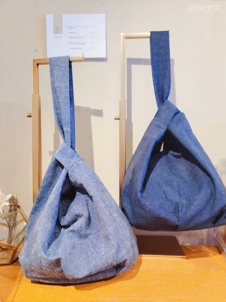 勺日獨家自製商品,採用MIT牛仔布,獨特雪花紋增添設計感,質感深藍與俏皮淺藍讓你隨意搭配,拎著就很有型。