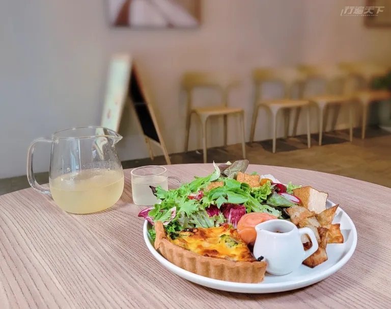 大力水手最愛吃菠菜啦!香料番茄培根鹹派佐上大量生菜、煙燻鮭魚、烤馬鈴薯角、佐以獨家醬汁或胡麻醬。