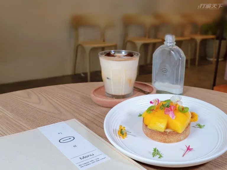 選用來自台南玉井香甜多汁的愛文芒果,採厚切工法鋪滿每日手工製作的酥脆塔皮,吃起來香甜多汁、果香四溢。