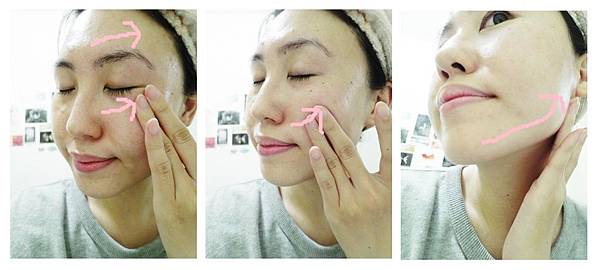 左右手同步由臉部中心往外+往上拉提按摩,效果會更好
