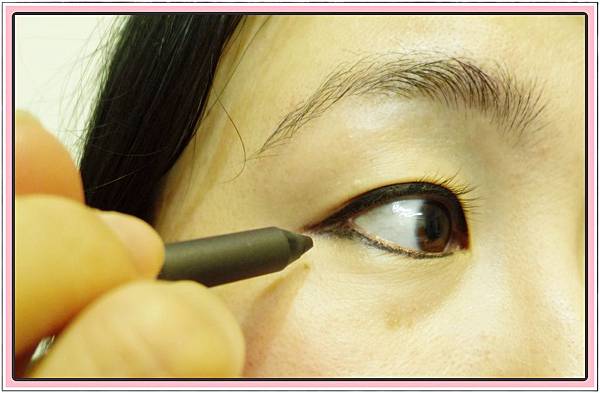 我是用粉持色眼線筆畫上眼線,用流暢眼線膠筆畫下眼線