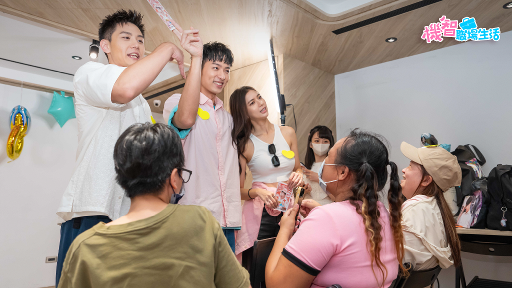 TV與TVBS攜手製作的愛情輕喜劇《機智職場生活》,自播出以來好評不斷,下禮拜三(8/23)即將迎來大結局,為回饋粉絲,《機智職場生活》特別在今日(8/19)舉辦小型粉絲見面會,鍾岳軒、黃柏峰、鄭豐毅、陳彥廷、鄭芯恩、馮容潔等六位主要演員現身與粉絲們近距離互動,還首度公開「川咪CP」黃柏峰、馮容潔的「一刀未剪版」求婚影片,讓馮容潔直言:「跟大家一起看很害羞,好險接吻的地方很快就剪掉了」,不過除了「川咪CP」之外,其他人竟意外上演「換換愛」,全場嗨翻。