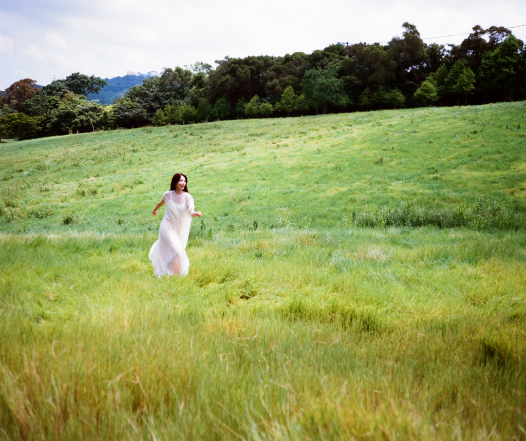 ▲ 田馥甄白天頂著38度烈日在山坡上取景,聽著導演指令上上下下來回奔跑了半小時,熱到頭暈目眩、汗水噴發最後成品只剪三秒。(圖:何樂音樂)