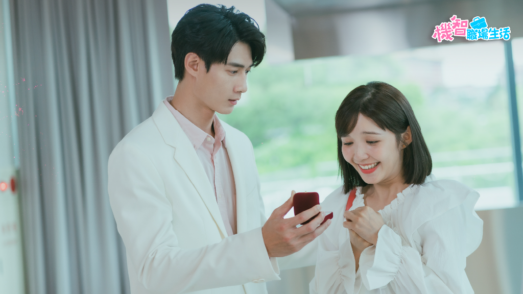 TV、TVBS共同製作的愛情輕喜劇《機智職場生活》於今日(23)迎來大結局,黃柏峰為了女友「咪寶」馮容潔,策劃了一場浪漫求婚,重回學生時期初次約會的地方,在現場精心佈置回憶照片牆,重溫兩人的感情點滴,掏出戒指問馮容潔:「妳願意嫁給我嗎?」讓馮容潔深受感動,「機智好友們」也抓準時機出現共同慶祝,最後「川咪CP」更在眾人的見證下再次擁吻。馮容潔笑稱:「相較於第一集回家時被抓包偷偷親熱,最後一集這場戲反而更害羞!」黃柏峰也笑回:「這一季從接吻開始,又以接吻收尾,我們就算是有始有終。」