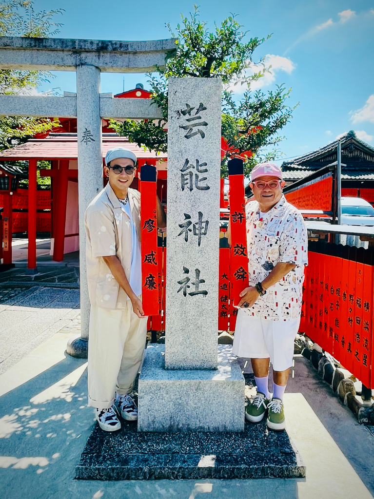 接著來到眾星雲集的藝能神社,顧名思義是保佑演藝人員星運亨通,身為第一組參拜的台灣藝人,許效舜和威廉獲得VIP尊榮待遇,兩人名字不僅如願高掛玉垣上,隔壁鄰居刷一排全是日本頂流巨星,赫然驚見國民姐夫AKIRA也名列其中。