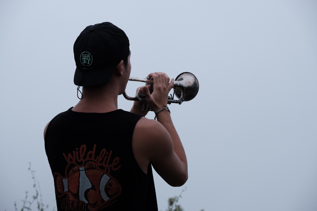 ▲ 牧森練習樂器中。(圖:周子娛樂)