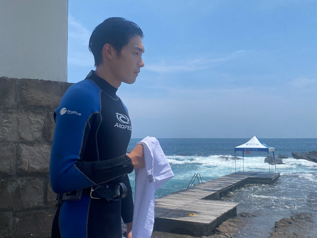 ▲ 牧森最喜歡的休閒活動是秘境跳水與海邊潛水。(圖:周子娛樂)