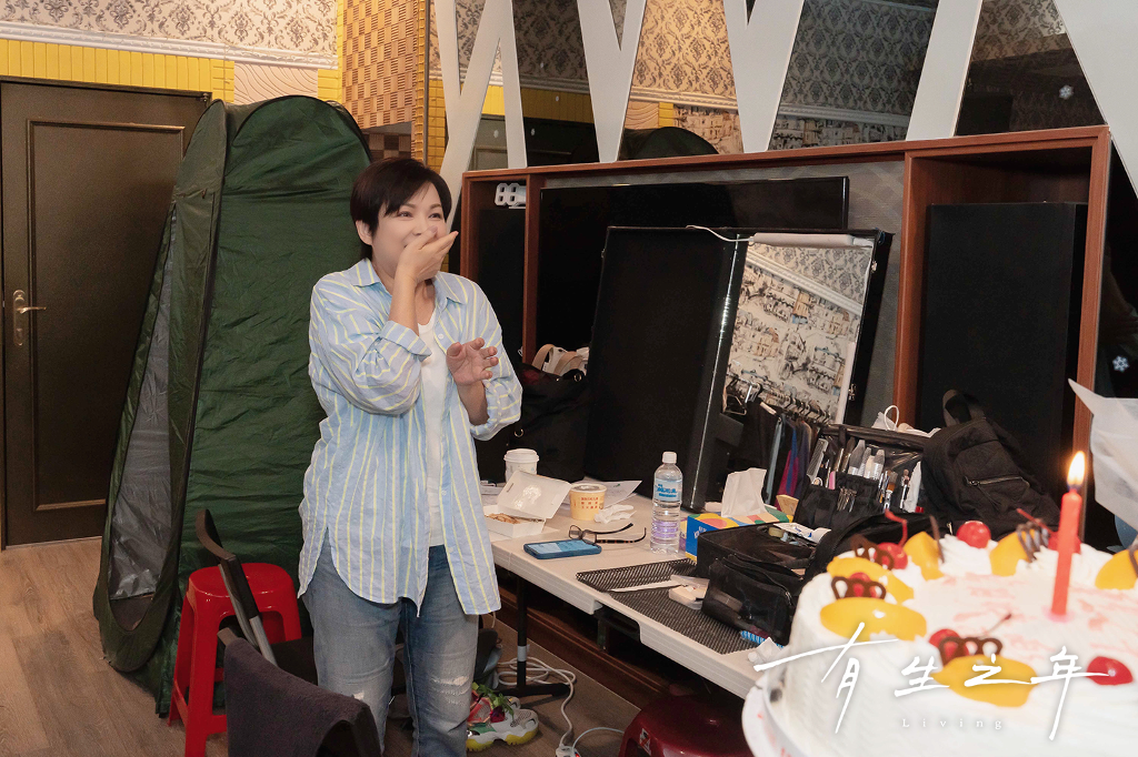 《有生之年》以高家一家笑中帶淚的故事為主軸,楊貴媚、喜翔分飾高家父母陳麗英、高正隆,靠著早餐店養大三個兒子,卻因兩年前高爸疑似外遇一事,引發夫妻間爭吵不休。楊貴媚、喜翔戲裡吵不停,戲外感情卻十分深厚,今(6)日適逢楊貴媚生日,喜翔特別帶著劇中孫子謝展榮,遠赴新影集的拍攝現場為楊貴媚慶生,分別送上粉紅花束及生日蛋糕,突如其來的生日驚喜,令楊貴媚十分意外,直呼:「 嚇我一跳,我老公耶!我孫子耶!」祖孫兩人更在楊貴媚臉上輕輕一吻,楊貴媚欣喜之情溢於言表。