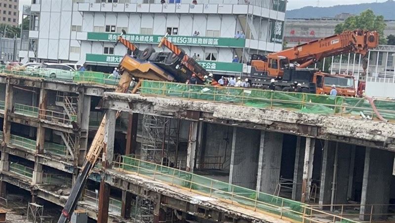 台北知名商場「京華城」改建「京華廣場」工程今(7日)上午發生工安意外,消防局獲報吊車在頂樓「倒栽蔥」向下翻覆,30歲左右駕駛在消防人員協助下脫困就醫。