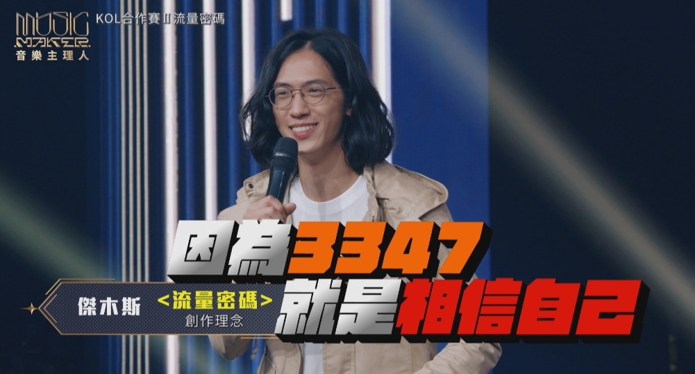傑木斯的創作則直接呼應賽制主題「流量密碼」,他認為流量密碼就是3347,3347代表的意思就是相信自己,傑木斯記得喬瑟夫曾提及不喜歡別人說他是KOL,因為他覺得KOL沒有什麼專業,就像傑木斯也不喜歡被說成吉他手,而希望自己是音樂主理人一樣,於是他發現其實真正的流量密碼就是相信自己,3347跟相信自己聽起來很像,陶晶瑩聽了馬上吐槽:「好像也不是那麼的像耶!」笑翻眾人,爵士對上搖滾風格最終到底誰勝誰負?究竟誰能進入六強?