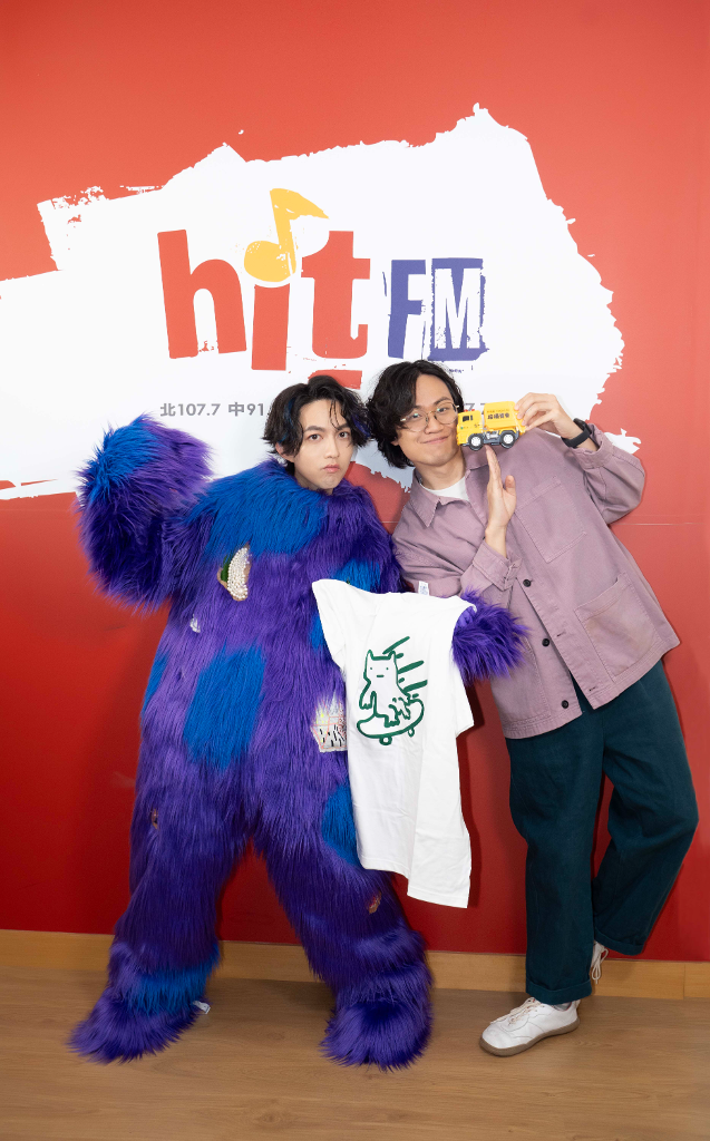 ▲ 林宥嘉穿著色彩繽紛的「熊裝」來上電台。(圖:Hit Fm)
