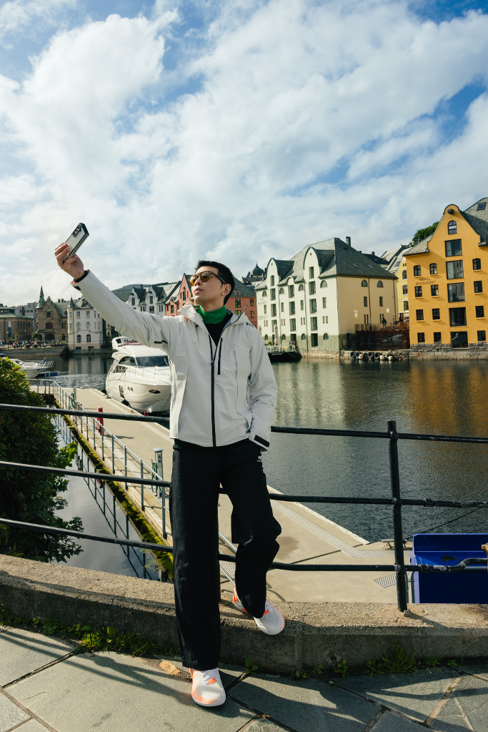 這次來挪威蕭敬騰也選擇和所有團隊一起住在airbnb,體驗當地慢悠過生活的感覺,所以也趁著休假的一天去了超市採買,不管是生活用品或是自己想吃的蔬果零食都讓老蕭自己挑選,他也彷彿挖寶一樣,買了各式各樣的甜點餅乾,吃到好吃的還問說:「這我們回去之後還買的到嗎,太好吃了!」於是拍MV的這幾天也是滿滿的零食裝滿車廂,拍攝的氛圍也和以往大不相同,大家都是隨便找個戶外位子或者大石頭就席地而坐甚至悠閒望著美景站著吃,輕鬆愜意不拘泥,『金曲歌王』蕭敬騰也穿著華麗的宣傳服和大家一樣隨興,也因為這樣的反差意外吸引了當地居民的目光,紛紛想要與老蕭合照。