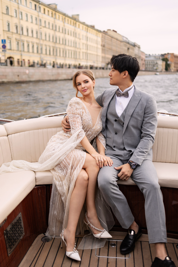 徐新洋特地遵循俄羅斯傳統,婚前飛到Soa娘家拜訪她的爺爺、奶奶,並和Soa全家一起拍攝婚紗照。一行人到俄羅斯聖彼得堡取景,兩人事前特地申請租借城堡,預訂當地拍攝團隊,在富麗堂皇的古蹟圍繞下,拍下一幀幀唯美照片,徐新洋描述:「城堡過去是俄國貴族的住所,現在變成博物館,第一眼看到還是會覺得很壯觀。」俄羅斯攝影人員,配合場景現場播放古典鋼琴音樂,小倆口很快進入狀況,隨著氛圍自在入鏡,僅花2小時就完成所有拍照工作,攝影師忍不住讚美,兩人的婚紗是拍過中最快收工的新人。