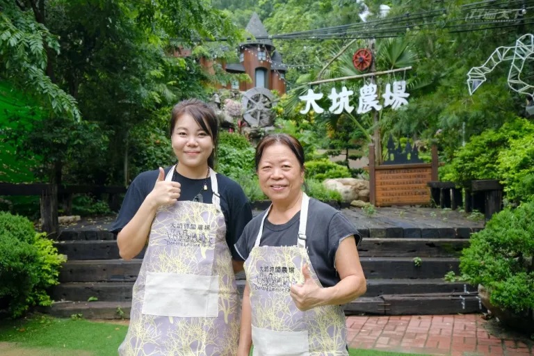早年蔡阿嬤一家人在這片土地種植蔬果、竹筍,後來蔡爸爸接手,除了種植蔬果,還養殖土雞,後來更轉型為現今的休閒農場。如今大坑休閒農場已有第三代加入經營,大姐負責咖啡廳與公關行銷工作;二姐負責與蔡媽媽一同掌廚;小妹則負責櫃檯接待與房務,蔡家三姐妹各自發揮所長,將農場持續經營出屬於新時代的方向。