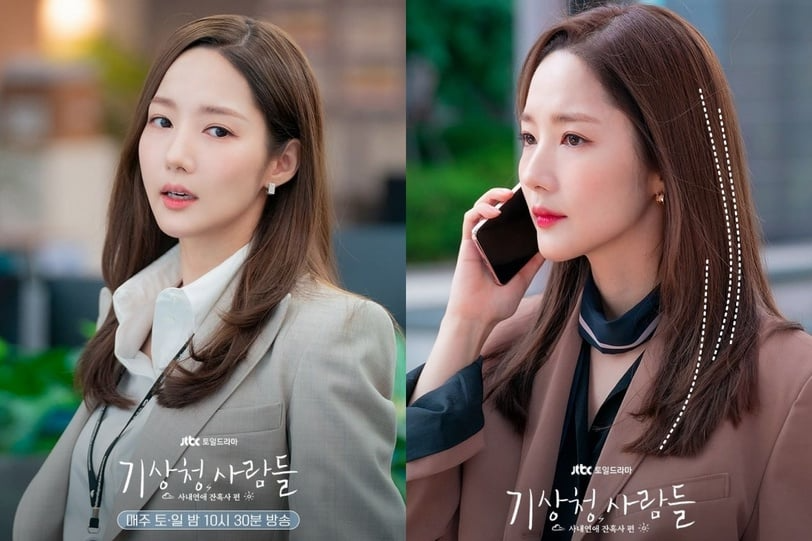 《氣象廳的人們》開播就因為主演朴敏英、宋江超強的化學反應引發話題,劇中朴敏英飾演氣象廳二組的科長,以俐落的長直髮帶出專業感,非常有職場高管的氣勢!