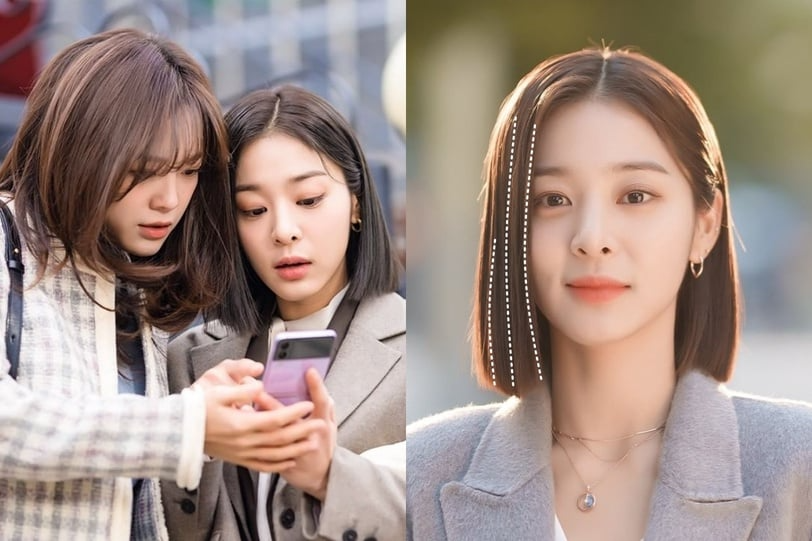 《社內相親》中薛仁雅飾演財閥獨生女「陳妍書」,同時也是女主角金世正的好友,這款短髮其實有點像是先前介紹過的Sleek Perm,是一款比較個性的短髮範本,齊平、沒有層次的髮尾,也沒有任何捲度,非常率性!強調頭髮表層的光澤感,在吹髮時將頭髮吹順、或是稍微用軟髮蠟抓出線條都很推薦~