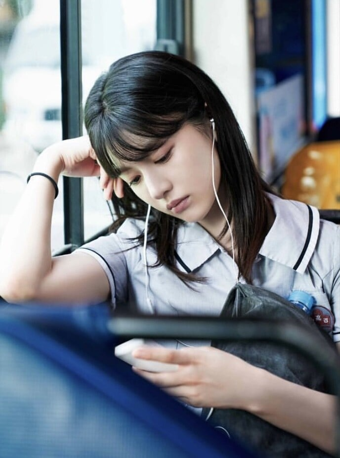 擁有「南韓整形範本」之稱的高允貞,在新戲《Moving》中飾演著高中生,一頭簡單整齊的長直髮,配上甜美的空氣瀏海,初戀感滿滿!這款「內扣直髮」在髮尾處有剪出些許層次,不是特別明顯的高層次,卻能製造髮尾自然的內扣和捲度。
