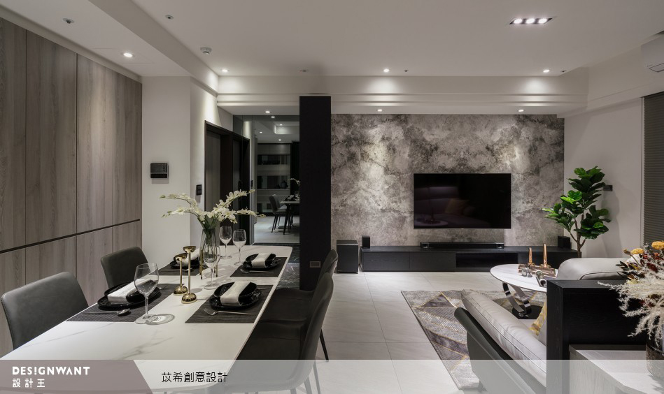 美式輕奢風案例 1 俐落黑白石紋設計營造輕奢感