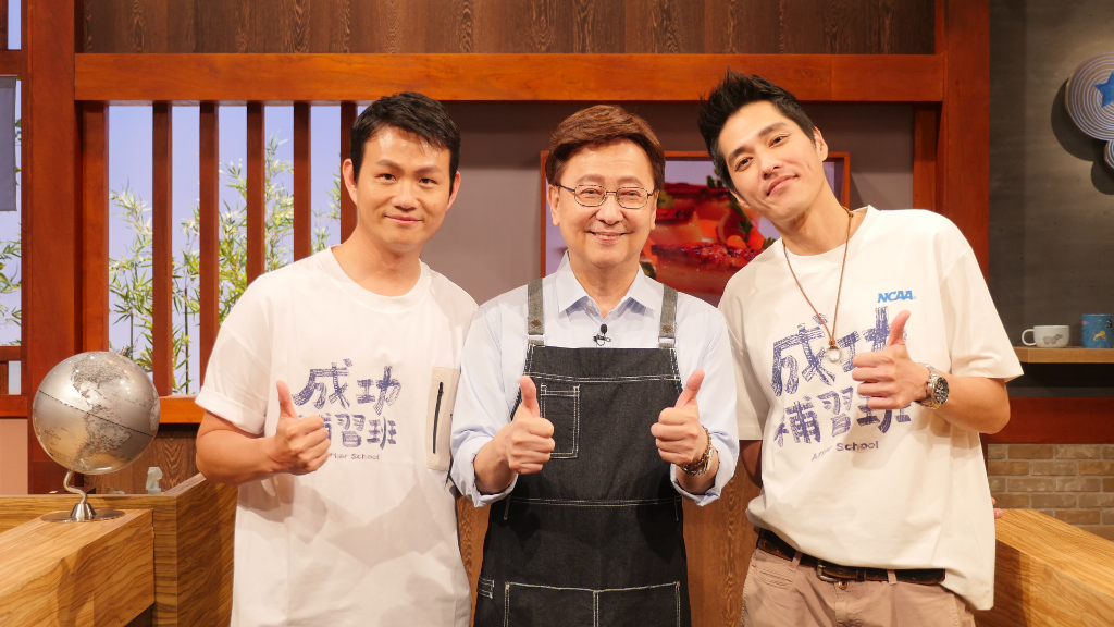 ▲ 藍正龍(右)與《成功補習班》編劇王靖惇(左)接受《大雲時堂》李四端(中)專訪。(圖:MOMOTV)