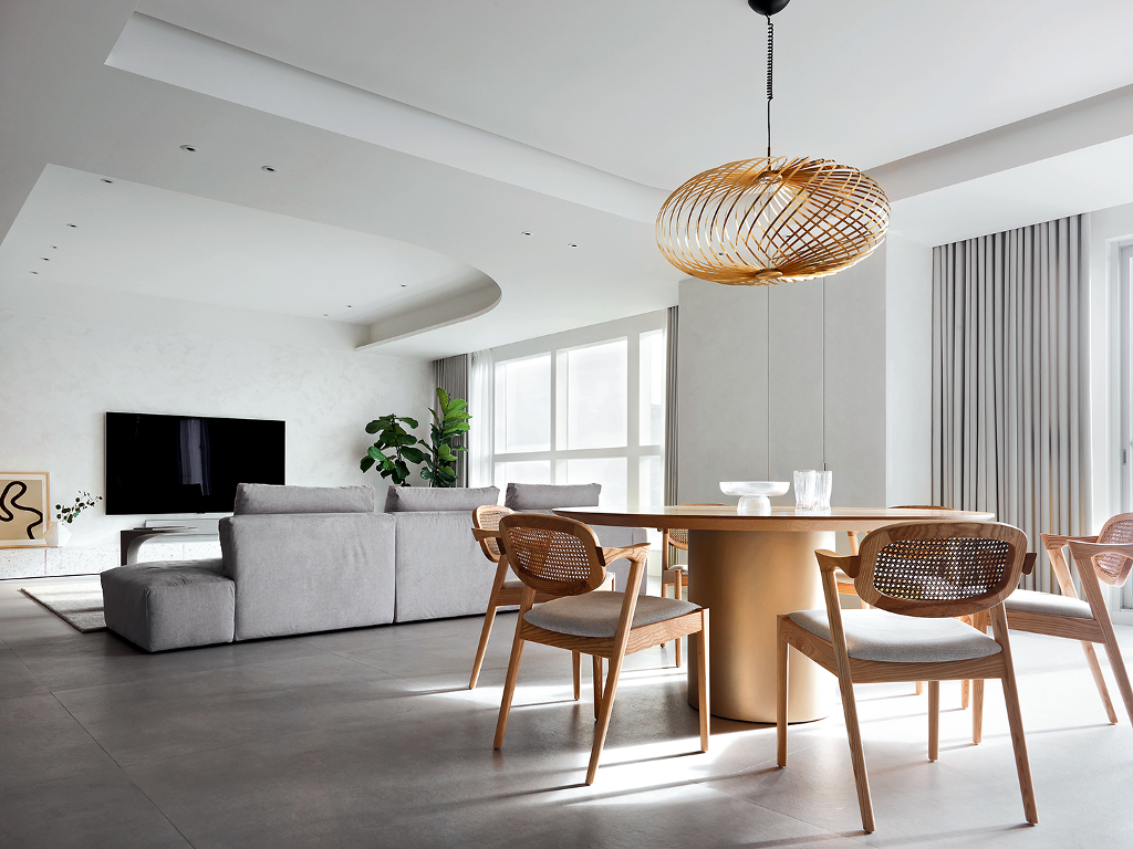 木製系統櫃的簡潔設計和質樸的材質,展現了歐美風格的實木特色。櫃體的細節處理和木紋的展現使整體更具質感。餐桌同樣以實木製成,營造出自然舒適的用餐環境。這些木製家具不僅實用,更為空間增添了一份自然的氛圍和溫暖感。