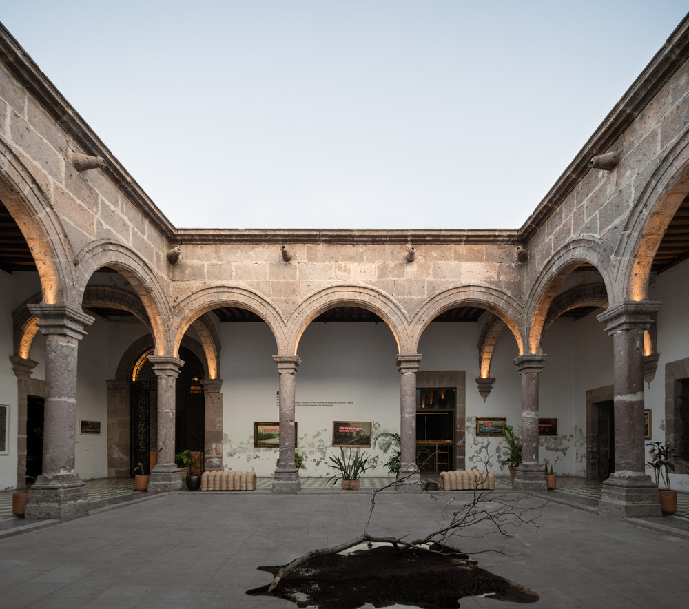 饕客們來到這裡的驚奇體驗從進入這座歷史建築便開始展開,古老的走廊與觸目可及的畫作,完全導引人們先進入純粹的藝術迴廊;庭院中心擺放著一件雕塑作品,樣貌就像死去的植物狀態,以此暗示著建築隨著時光流逝留下的痕跡。