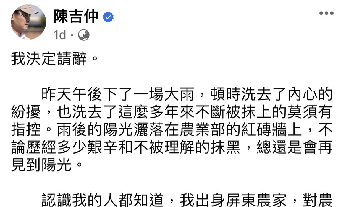 照片來源:陳吉仲臉書粉絲專頁截圖。