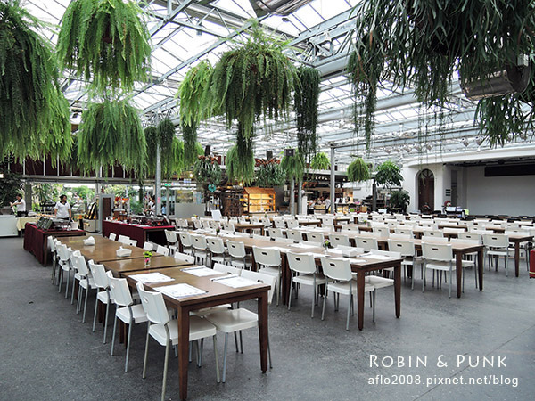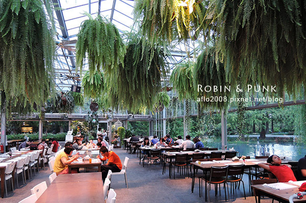 往餐廳裡面走去~哇~~相當的清新且舒服,座位相當多,大約可容納幾百人,餐廳上方懸掛著許多蕨類植物,讓人彷彿走進大自然裡用餐!