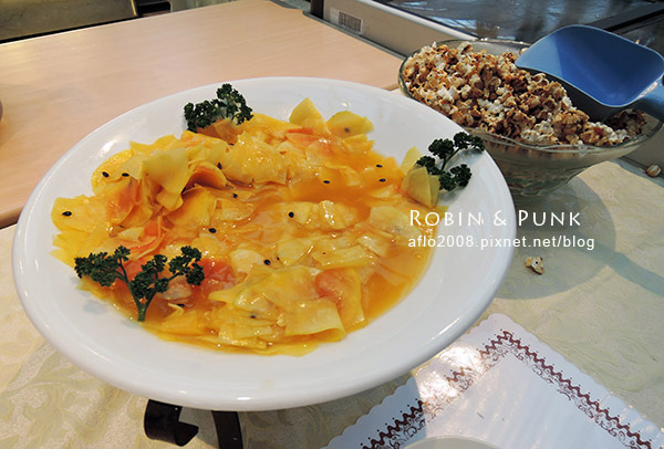提供了三種不同的熱湯~義式、中式濃湯,另一個我忘了~~不過湯的味道還蠻濃的,都不錯喝