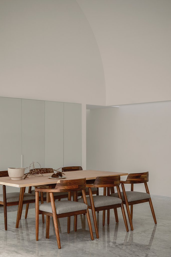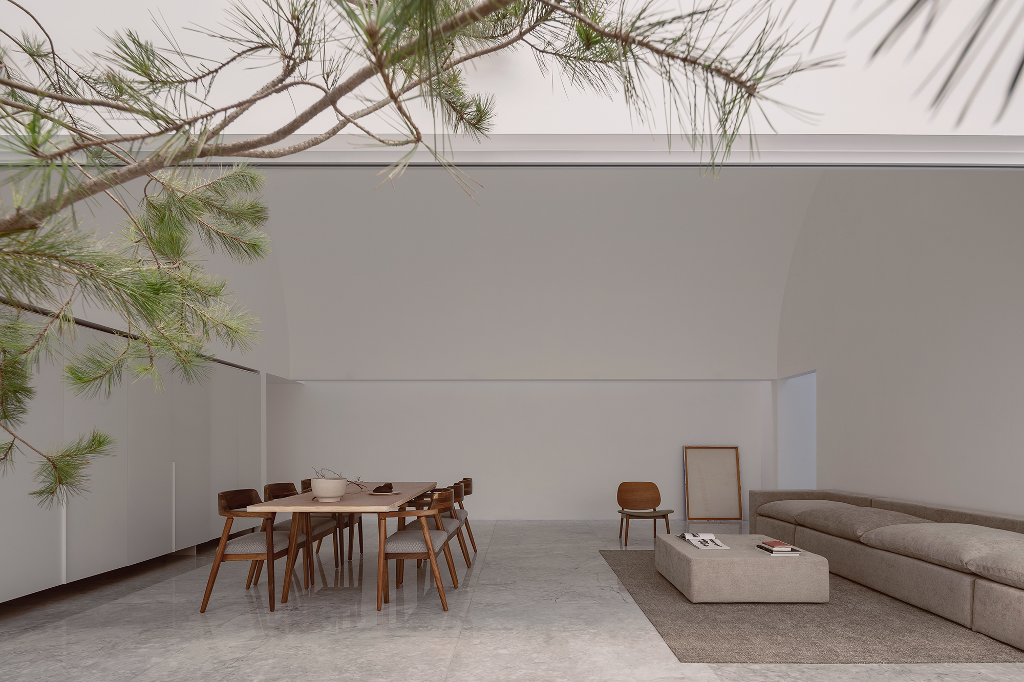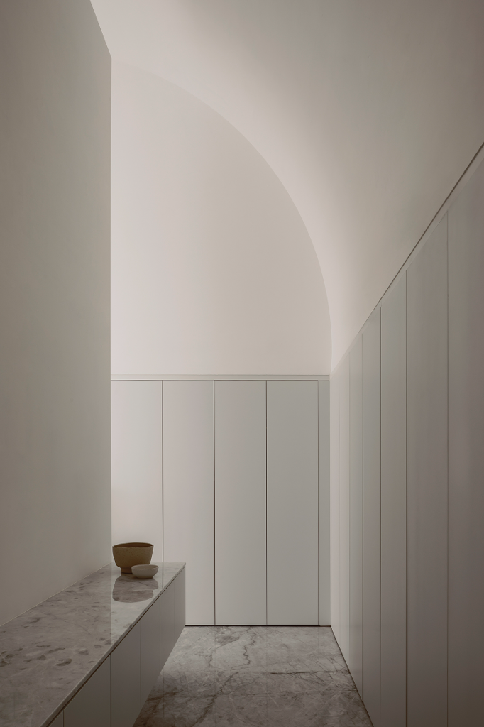 為了滿足居民虔誠的宗教信仰、能再度感受安全感,HW Studio模擬修道院風格,為居民量身訂作饒富宗教色彩的居住空間,以庭院的模式搭建帶有圓形拱頂的空間;拱頂模糊了屋頂的界限,柔化了光線,還能藉此向城市裡眾多的巴洛克教堂致敬。
