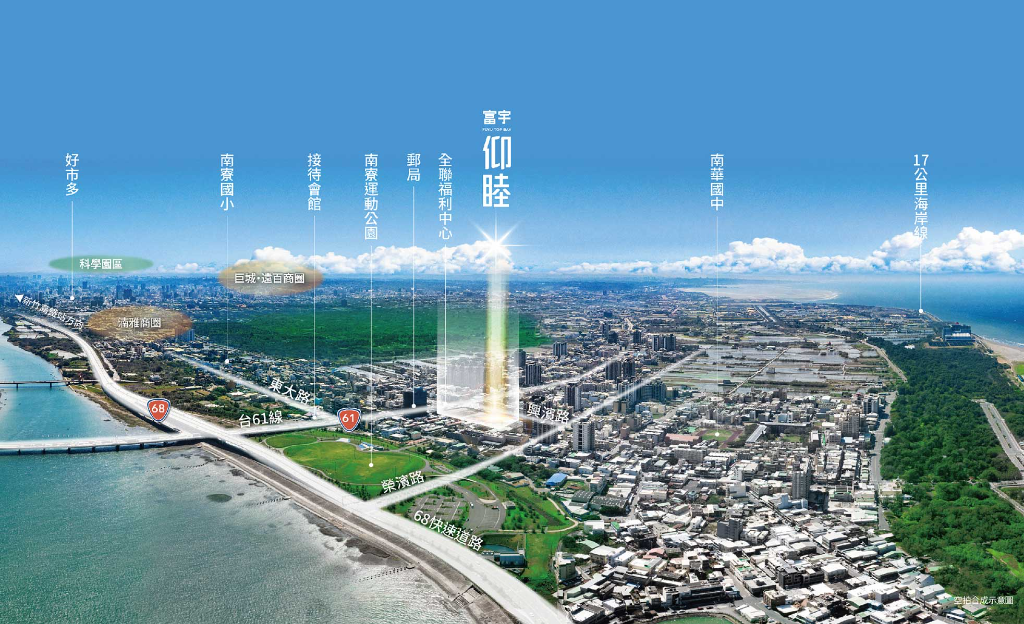 【富宇仰睦】承襲富宇往昔雍容大器規劃實力,將南寮天際線蛻變為國際級海灣新風 景,以絕佳美學觀點開拓謙退街道質感,磁吸重視舒壓療癒的科技族群及軍公教族群 前來鑑賞新案,眾人期盼未來富宇建築大道磅礴問世。以【富宇仰睦】為圓心,走路 可達全聯及超商、郵局,近傍國際風箏賽場、南寮運動公園、南寮國小、波光市集、 珍貴 17 公里壯闊海岸線,開車可享湳雅蔦屋大潤發、巨城大遠百、東大路、經國路等 鑲金商圈,已然成熟的海灣生活圈相當適合親子移居、熟齡換屋,從富宇到賦予, 【富宇仰睦】將生活品質推向峰頂。