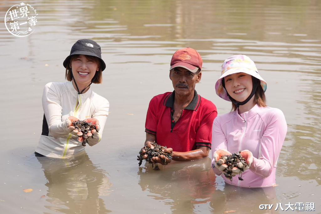 按摩結束後,張景嵐、李懿跟著當地居民體驗蛤醬製作過程,