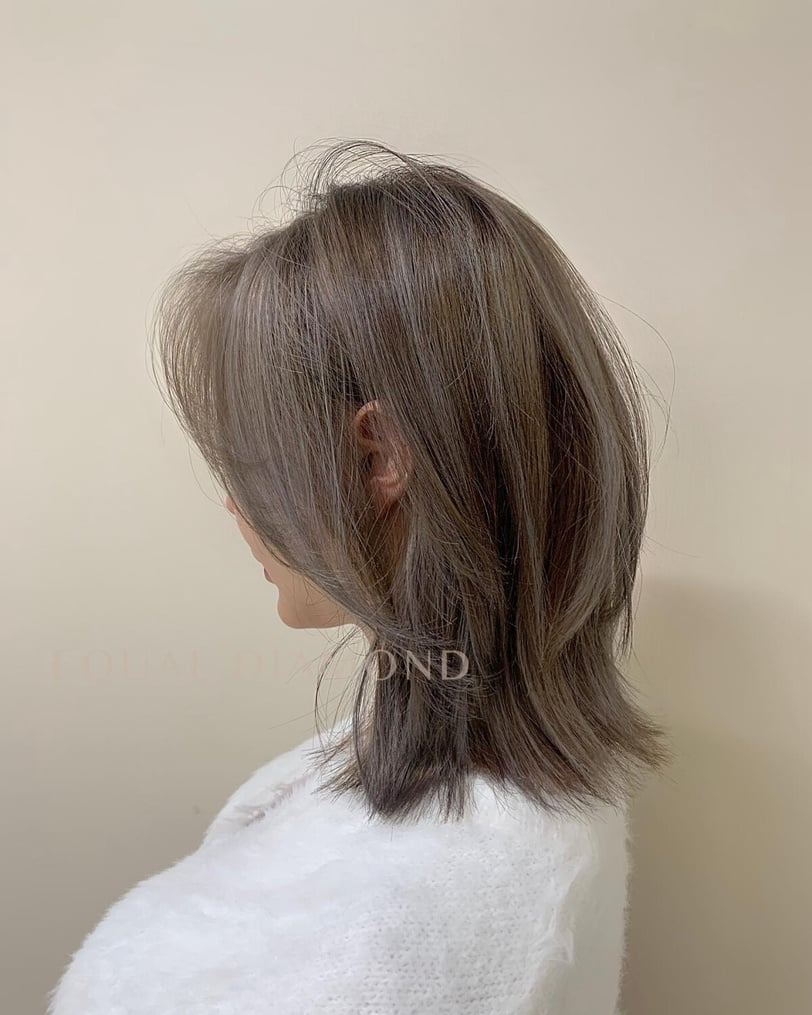 低調的榛果灰棕超級溫柔,偏霧感的灰棕色調染完像是開啟美白濾鏡,因為多了榛果棕的暖色調,即使是偏深髮色也不會看起來沉悶,還能襯出肌膚的透明感,輕盈的氛圍讓頭髮相當有質感,顯得相當溫柔。另外也可以搭配些許奶茶色挑染,是韓國近期的流行趨勢。