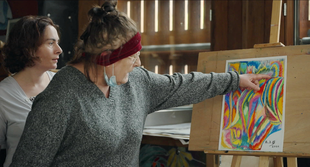 超會搶戲的病患妙麗兒托隆(Muriel Thouron),就以一幅描述母螳螂愛慾生死的畫作【生命、愛與死】搶盡病友風采,她的劇照甚至登上【好萊塢報導者】(THR)、【銀幕】(Screen)等國際影媒,讓她一夕間初嘗「爆紅」滋味。有趣的是,妙麗兒托隆在片中解讀她的畫作,「母螳螂為『愛』而交配,為展現『死』而殺夫」,搭配詭趣表情引人發噱。更勁爆的是,就在她的畫作大獲讚賞時,她竟自爆說「我本來要畫長頸鹿,卻不小心畫成了螳螂」笑爆觀眾。《塞納河上的船屋》全片充滿療癒力道,強調「藝術是最有效的治療」,力促精神障礙患者重振、展開他們的社交。