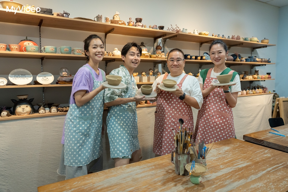 ▲ 李霈瑜(左起)、李之勤、林鶴軒、張永正大啖美食。(圖:MyVideo)