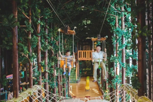 ▲ 超人氣設施「空中飛人」刺激有趣。(圖片提供:木育森林)