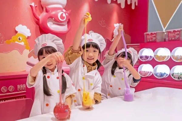 桃粉紅色的大空間中,孩子們專注著攪拌、拉提,甚至是鑽進大型史萊姆泡泡裡,最受孩子們喜愛的GAGA monster史萊姆怪獸星球也降落新店裕隆城囉!史萊姆是一種由膠水、水混合而成的粘液狀物質,觸感介於液體與固體之間,黏呼呼又不會沾手十分特別。因市面上製作史萊姆的原料品質參差不齊,身為爸媽的創辦人為了讓熱愛史萊姆的女兒Queeny能夠安心創造、把玩,便在台灣各地尋找最優質的材料,不只給予自己的女兒,也希望來到這裡的小朋友們都能安心的遊玩,透過五感啟動創造與想像力,展開星際間與怪獸共同探險的旅程。
