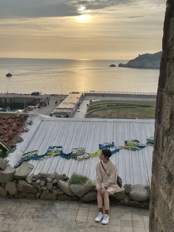 若能有時間前往東引,更可發現北疆小島也藉由藝術品展現著又柔軟又堅韌的特性。由東引返鄉青年蔡沛原策劃,以循著東引人生活日常足跡來呼應「洄島嶼吧」的概念。在主要行走的中路街上發現的可愛石頭,則是邀請藝術家林美玲創作的《守護》,以藍、白、綠三種色彩羊毛包覆來自全台各地的石頭,外顯為台灣藍、白、綠多元又競合的政治哲學光譜,彼此輪替拼接交融,構成了台灣守護民主自由和消弭戰爭的無形城垛。循著一顆顆石頭在路邊的指引,才能找到位於樂華12號屋頂上的作品,用羊毛氈石頭組成在屋頂上如波浪的圖樣,映照著遠方軍事城垛與碼頭夕陽的海光粼粼,以柔軟向堅硬致敬。