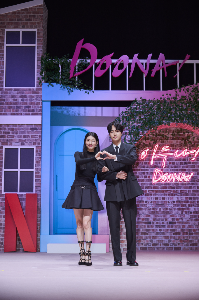 Netflix接檔浪漫影集《我的女神室友斗娜》今(18)日於首爾舉辦上線記者會,完美的浪漫化學反應即將上演!記者會現場星光熠熠,包含兩位主演秀智、梁世宗以及導演李正孝。秀智、梁世宗皆以率性的黑色套裝出席,與現場繽紛的舞台背景形成強烈對比,盡顯兩人氣場。《我的女神室友斗娜》主軸圍繞著兩個世界的相遇,由平凡的大學生李元峻(梁世宗