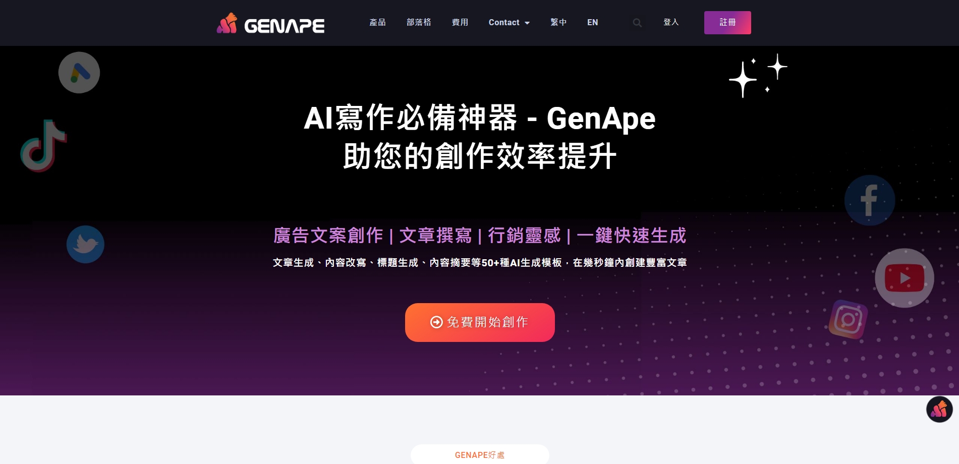 GenApe AI寫作工具-創意無限 輕鬆上手