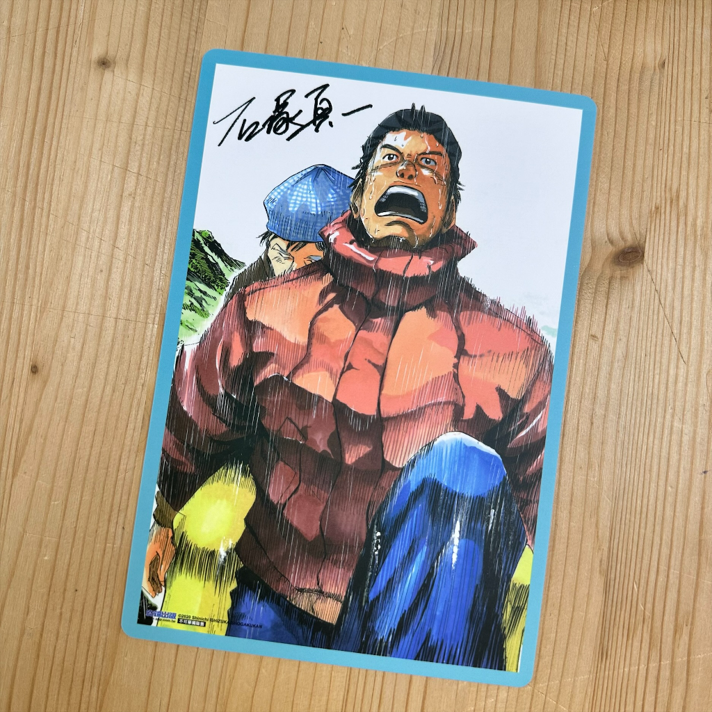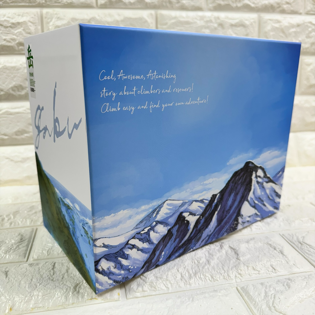 若購買中文完全版全9冊盒裝套書,還會附上全球獨家豪華精緻書盒以及複製簽名板。書盒挑選作者精心繪製的壯麗山岳美景進行設計,兩側添加局部光增添質感,帶領讀者進入主角島崎三步熱愛的山岳與天空。複製簽名板選用主角背負山友救助生命的熱血場面,這張富有作品代表性的插圖更入選為日本小學館漫畫雜誌《Big Comic Original》創刊50週年紀念原畫。