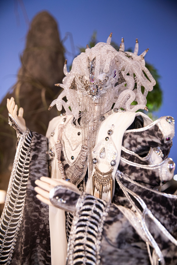此次一同走紅毯的兩位反派角色禁世淒狂、天地主宰,造型體現出霹靂獨有的時尚風格,兼具華麗古典、絢麗亮眼於一身。禁世淒狂造型上參考東方不敗,但為了更體現該角色的大氣,除了用皮草縫製誇張的大墊肩,更加上許多滾金邊及珠珠點綴;而天地主宰的造型發想來自蛇妖梅杜莎,特殊髮型讓角色添上如神話般的神秘色彩,以銀白色調為基底,再增添許多水鑽及鍊條裝飾,整體造型搭配光線,燦爛奪目。