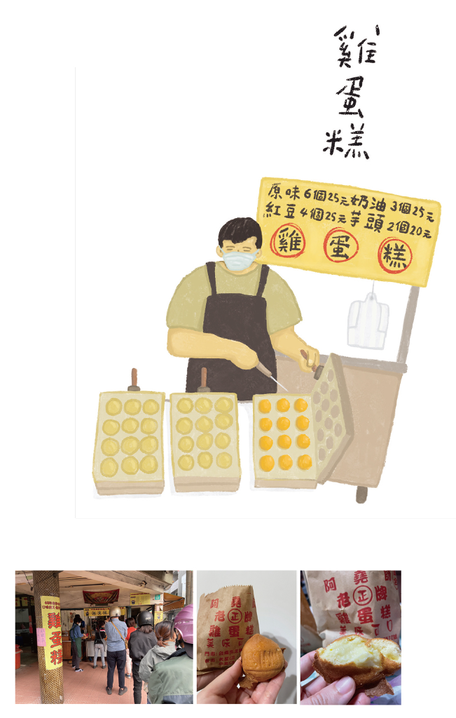 添加滿滿餡料的雞蛋糕。奶油口味餡料飽滿,口感濕潤綿密,非常濃郁也不會太甜膩。除了店面,也在小北及武聖夜市擺攤。