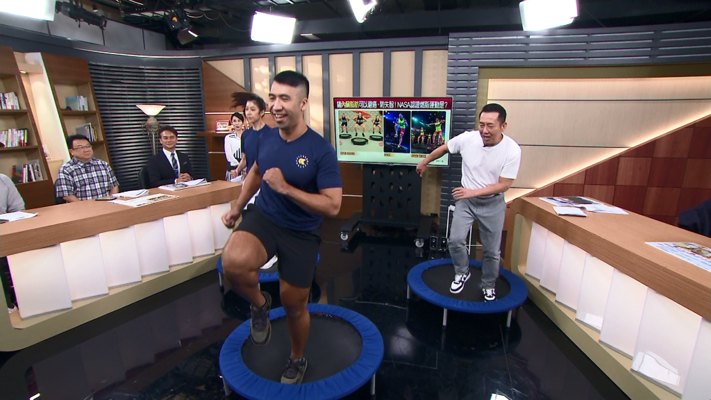 ▲ 健身教練現場教學,親自帶領屈中恆用「跳跳床」運動。(圖:年代)