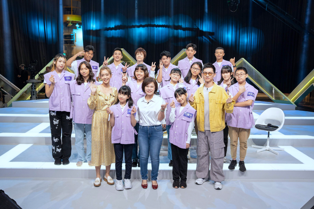▲ 王世堅議員(二排左起第4)上李霈瑜、視網膜(二排左3、右3)主持公視《哈囉!你給問嗎?》與現場「最萌提問團」合影。(圖:公視)