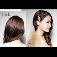 - 使用定型噴霧KEEP髮型輕輕抓開髮絲後由內側均勻噴上定型噴霧,最後再於側邊夾上髮夾,即大功告成。